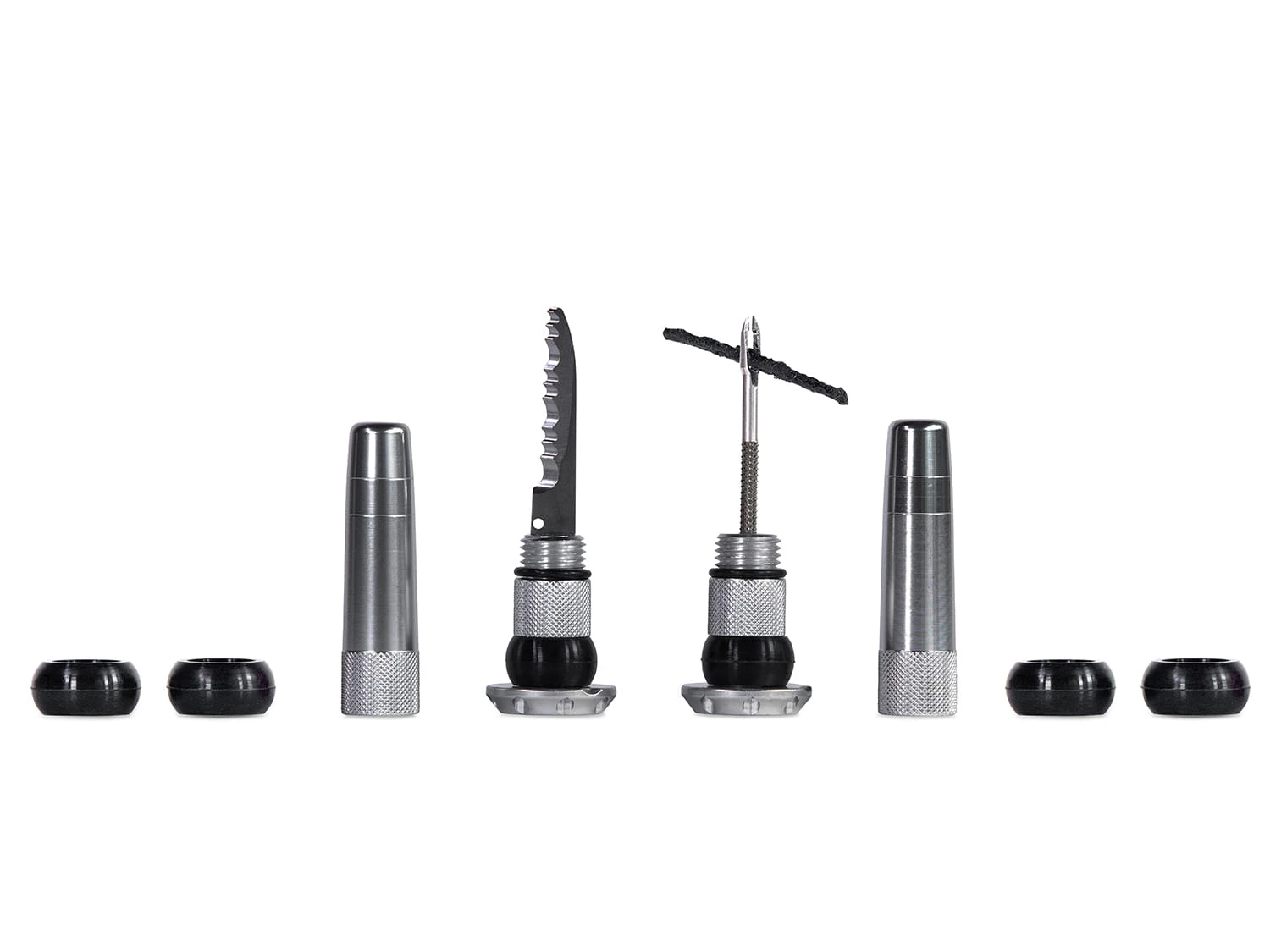 Elke van deze lichtgewicht en duurzame kits bevat alles wat je nodig hebt om te blijven rijden als je worstelt met een gat dat maar niet wil dichten. Een 2-in-1 roestvrijstalen prikpen, een verscheidenheid aan reparatiepluggen in verschillende maten en een trimmes.